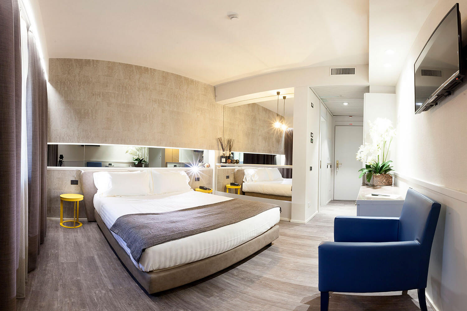 Designed by Gabriele Talpo, the Albavilla Hotel&Co is a 4-star hotel featuring 100 rooms. An innovative hospitality project that combines the quality of its services with a charming design. The Albavilla Hotel&Co was conceived for your stay, be it either long or short, granting the most attentive staff. The rooms feature unique design and represent a synthesis of elegance and comfort.