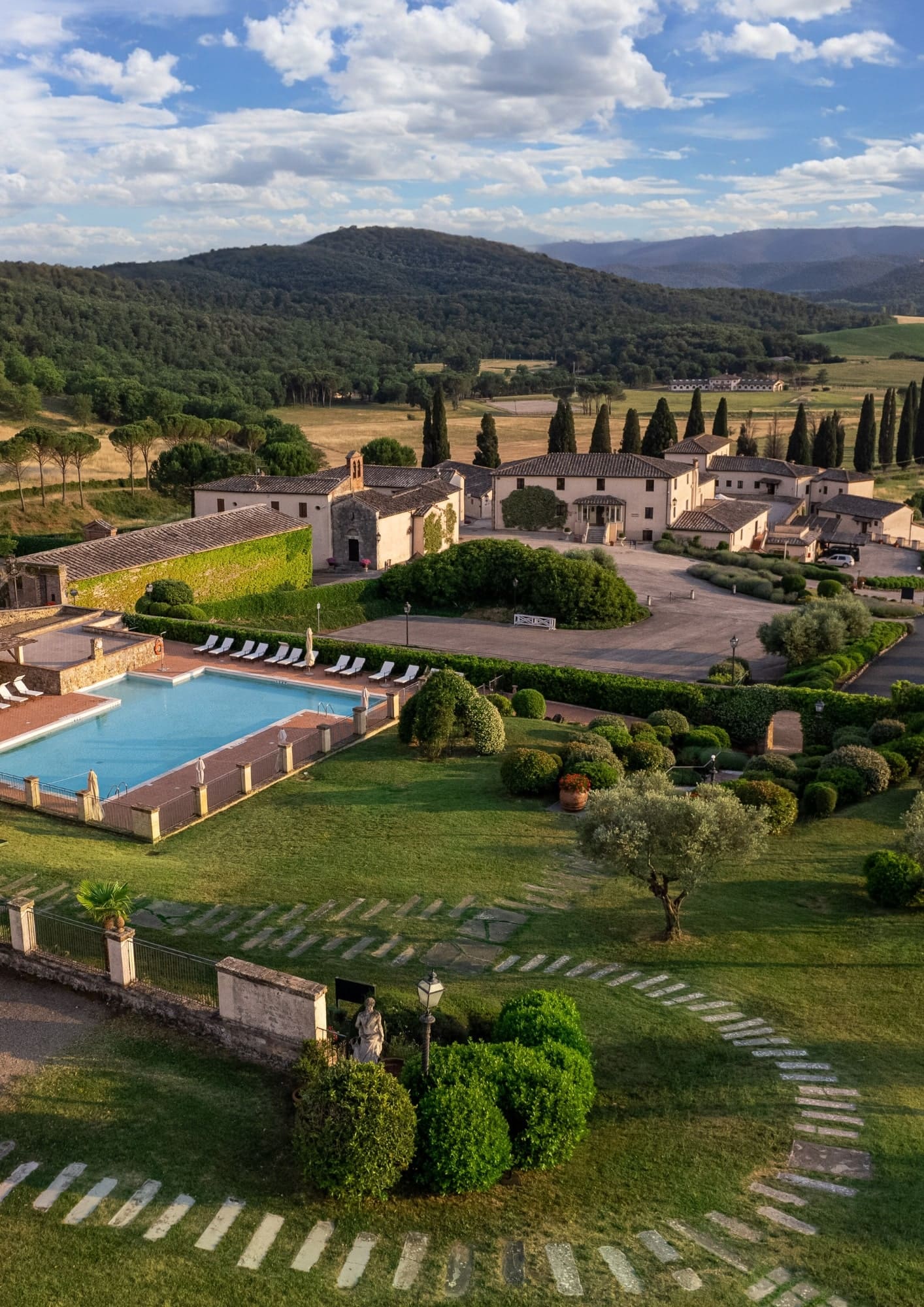 The rural village of Bagnaia has ancient origins, which are lost in the early Middle Ages when the peasants of the fertile Merse River countryside found safe and comfortable refuge around the fortress of the local feudal lord. After a long period of prosperity, the village became depopulated, and a revival occurred several decades later when the notable Jacopo Bichi purchased the entire estate and built his own country residence there. The heart of the village resides in the Church of St. Vincent and Anastasius, dating from the 12th century AD, and the Villa built for the Sienese Pope Alexander VII. The magnificent work of restoring the buildings was focused first on preservation, and later the development of the Resort, completed with full respect for the original value and character of the hamlet. Today Borgo Bagnaia offers 72 rooms and suites furnished in authentic Tuscan style, with endless space and time and the concept of modern luxury, enhanced by experiences in a totally sustainable environment.