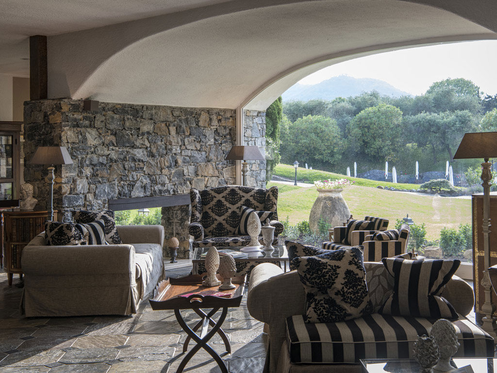 This romantic and relaxing hotel located halfway between Monaco and Portofino was designed and constructed in 1971 by Luisa Berto de Segre, a few years after her sister Teresa de Berto Galleani had built an eighteen hole golf course. Everything was designed in the style of nearby Provence: large arches and canopies, stone walls, antique tile roofs, warm and bright colors.