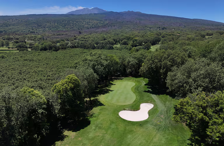 The resort is set at the foot of Mount Etna granting a unique terrain to play the 18-holes golf course.
