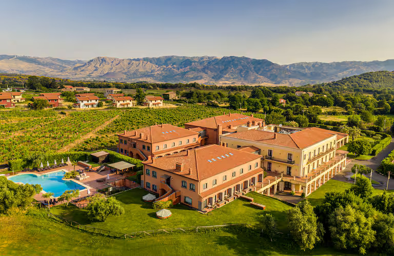 Set on the slopes of Mount Etna, Il Picciolo Etna Golf Resort & Spa is an ideal base for a golf break in Eastern Sicily, within easy reach of Taormina, the Etna wineries and the Alcantara area. The resort combines relaxed countryside vibes with an on-site golf course, Half Board dining, and a well-equipped spa — ideal for couples and small groups looking for golf, wellness, and Sicilian scenery in one trip.