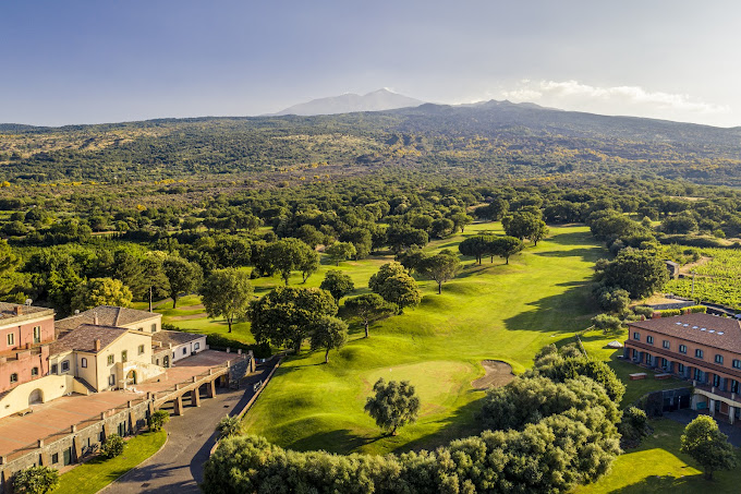 The resort is set at the foot of Mount Etna granting a unique terrain to play the 18-holes golf course.