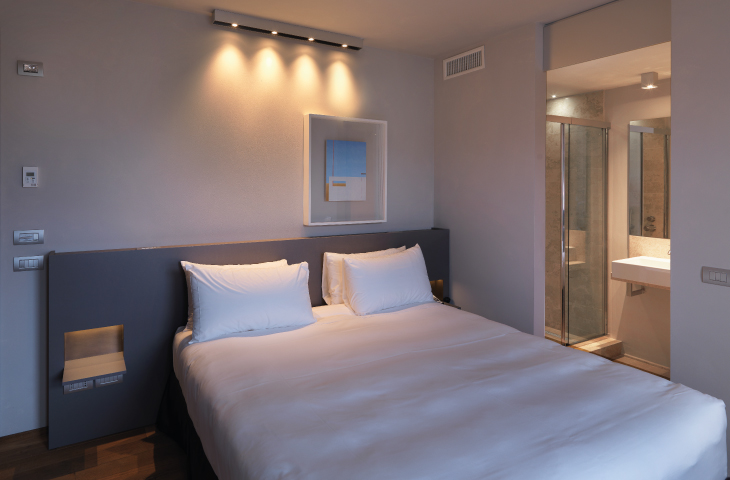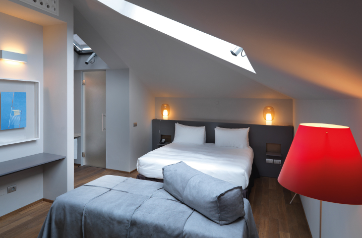 The Posta Design Hotel is a three-star hotel with five-star charm. Even though it’s housed in an extraordinary building – one of the very earliest examples of Rationalist architecture, by Giuseppe Terragni – it wears its importance with elegant aplomb. The recent restoration meticulously matches the new fixtures and furnishings to the spirit of the original main staircase, resulting in a delightful informality that invites guests to relax and feel at home, while maintaining the efficiency so dear to Terragni in the form of streamlined check-in and out, and a badge that allows access to the hotel even when the reception desk is closed.